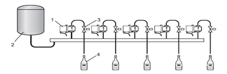 Prema zahtevima u pogledu kapaciteta punjenja, mašine mogu sadržati 1-16 mlaznica za punjenje.