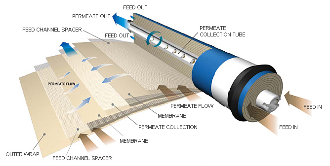 Proces reverzne osmoze odvija se posredstvom polupropustljive membrane na čijoj površini se vrši filtracija tečnosti. Pogonsku silu procesa čini razlika u pritisku sa obe strane membrane. Pod dejstvom povišenog pritiska vode, kroz membranu se filtrira prečišćena voda – permeat, dok se ostatak koncentrovane smeše odvodi iz procesa kao nusprodukt.