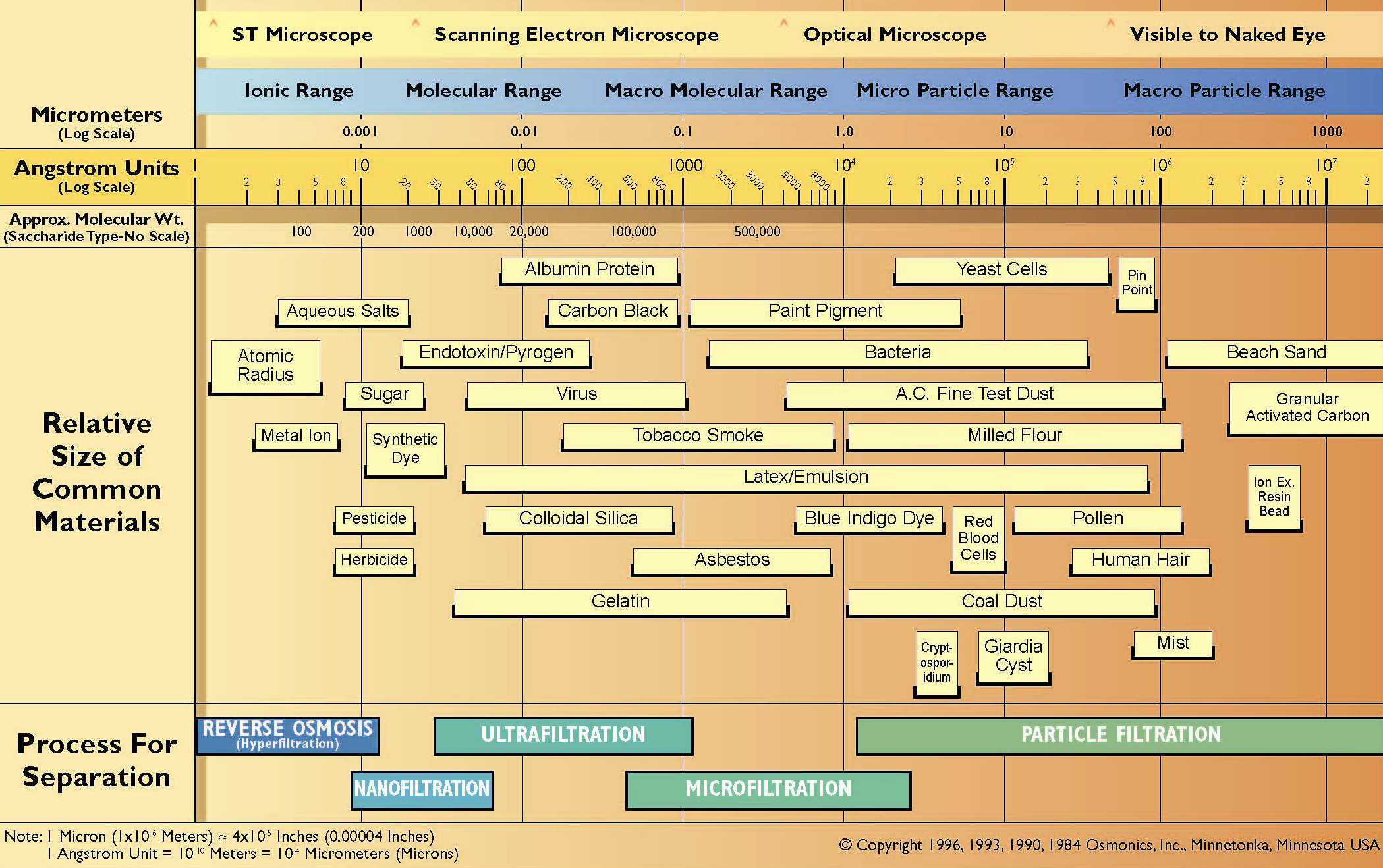 Veličina suspendovanih čestica koje se mogu izdvojiti iz vode ovim postupkom kreće se u granicama od 0.0001-0.001 µm, što reverznu osmozu svrstava u sam vrh spektra svih poznatih postupaka prečišćavanja.