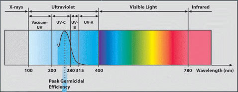 Princip rada UV sterilizatora zasnovan je na produkciji elektromagnetnih talasa - svetla ultra ljubičastog spektra, uskog opsega talasne dužine od oko 254nm. Elektromagnetni talasi ove talasne dužine ostvaruju inaktivaciju mikroorganizama, oštećujući im lance DNK i RNK, čime im onemogućuju proces daljeg razmnožavanja. Tako inaktivirani mikroorganizmi ne predstavljaju dalju opasnost za ostale žive organizme.